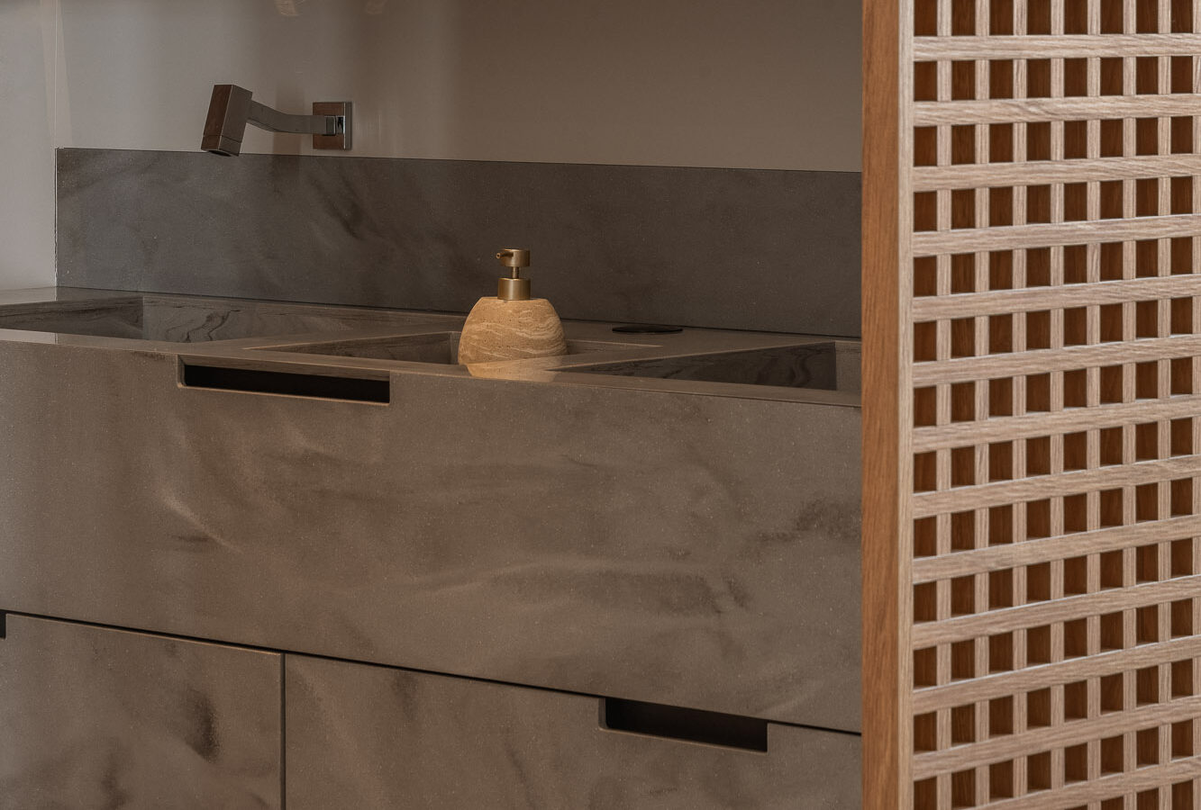 The panels balance strength and delicacy, bringing personality to the space without compromising harmony.